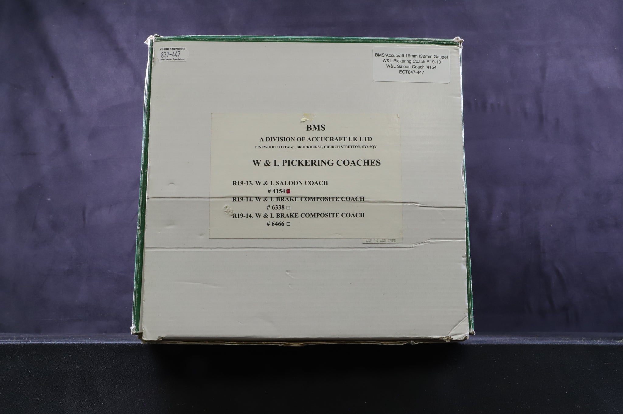 BMS/Accucraft 16mm (32mm Gauge) W&L Pickering Coach R19-13 W&L Saloon Coach '4154'