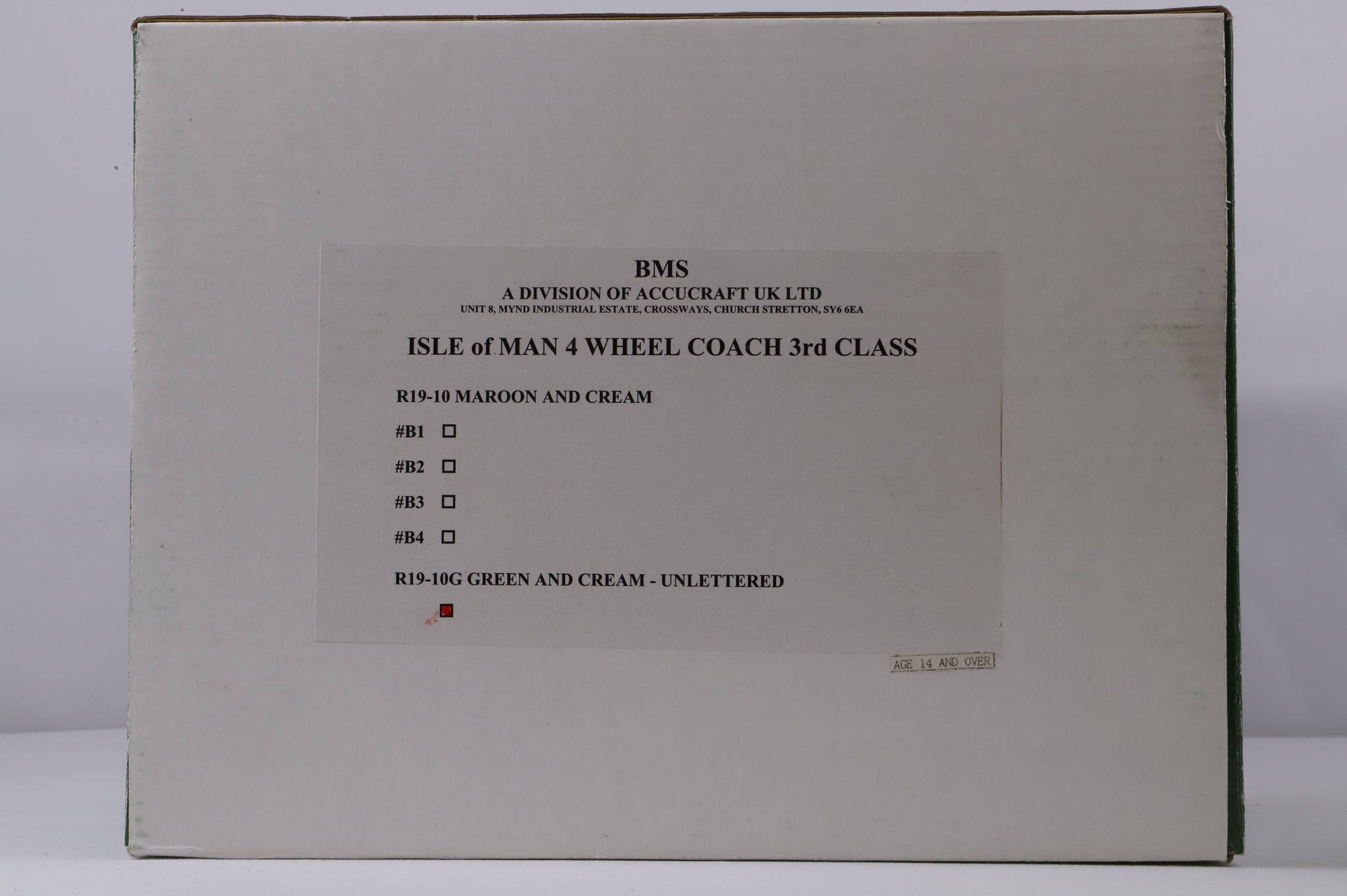 BMS/Accucraft 16mm Scale (45mm Gauge) Isle of Man Railway 4-Wheel Coach Third Class Green & Cream