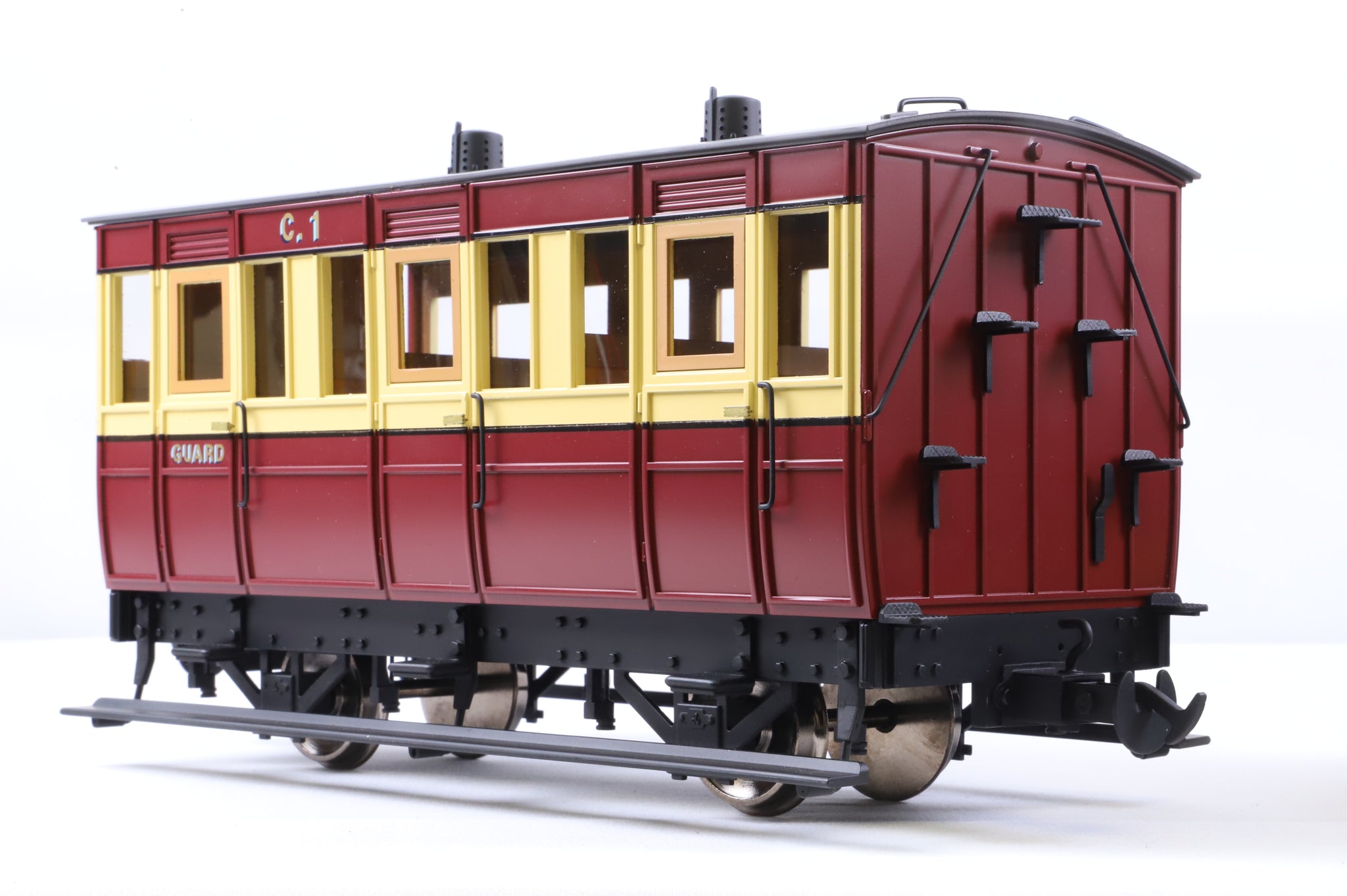 Accucraft Isle of Man Railway 4-wheel Coach 3rd/Guards. Gauged for 45mm track with 32mm wheel sets included.