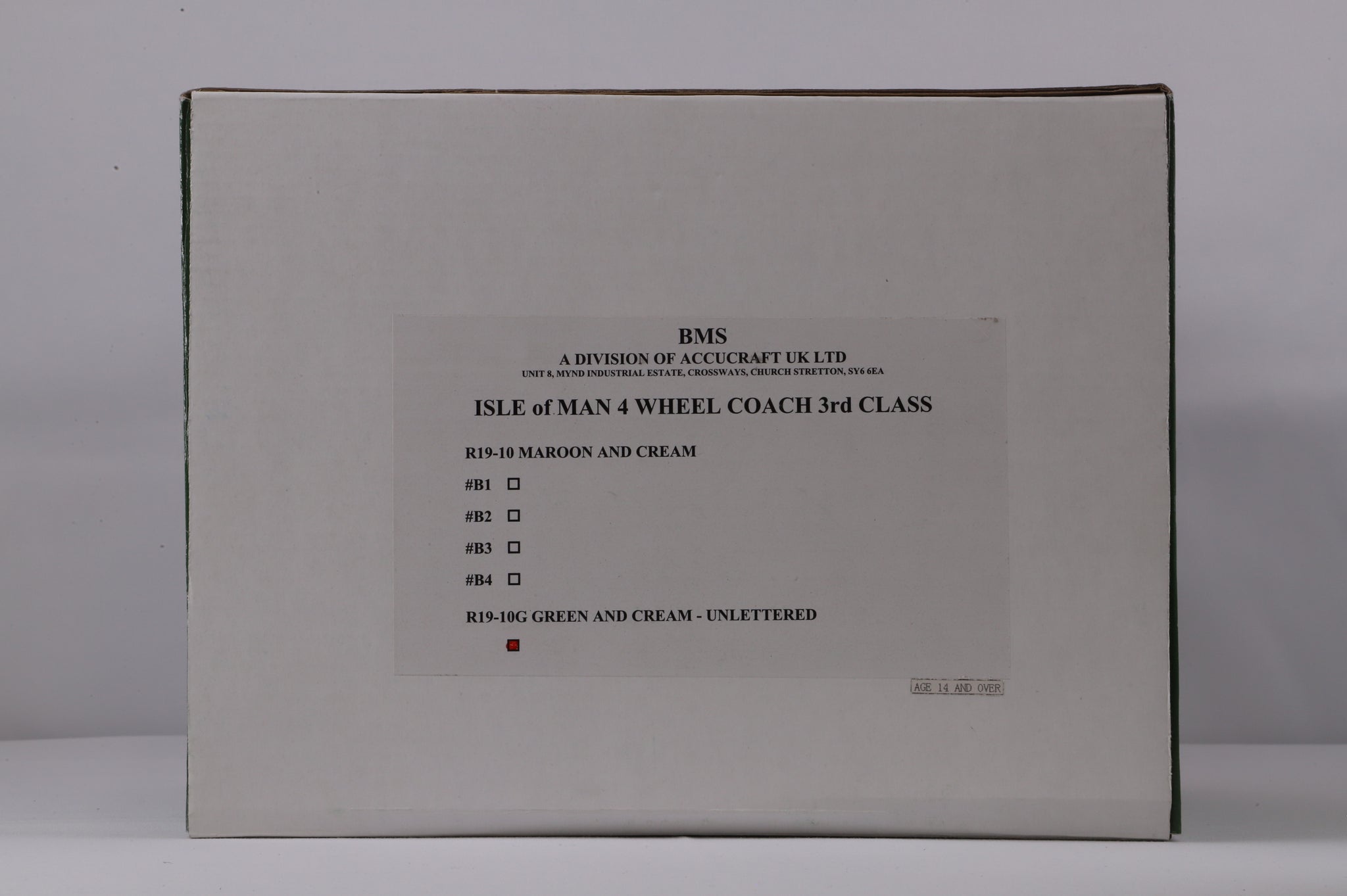 Accucraft Isle of Man Railway 4-wheel Third Class Coach. Gauged for 45mm track with 32mm wheel sets included.