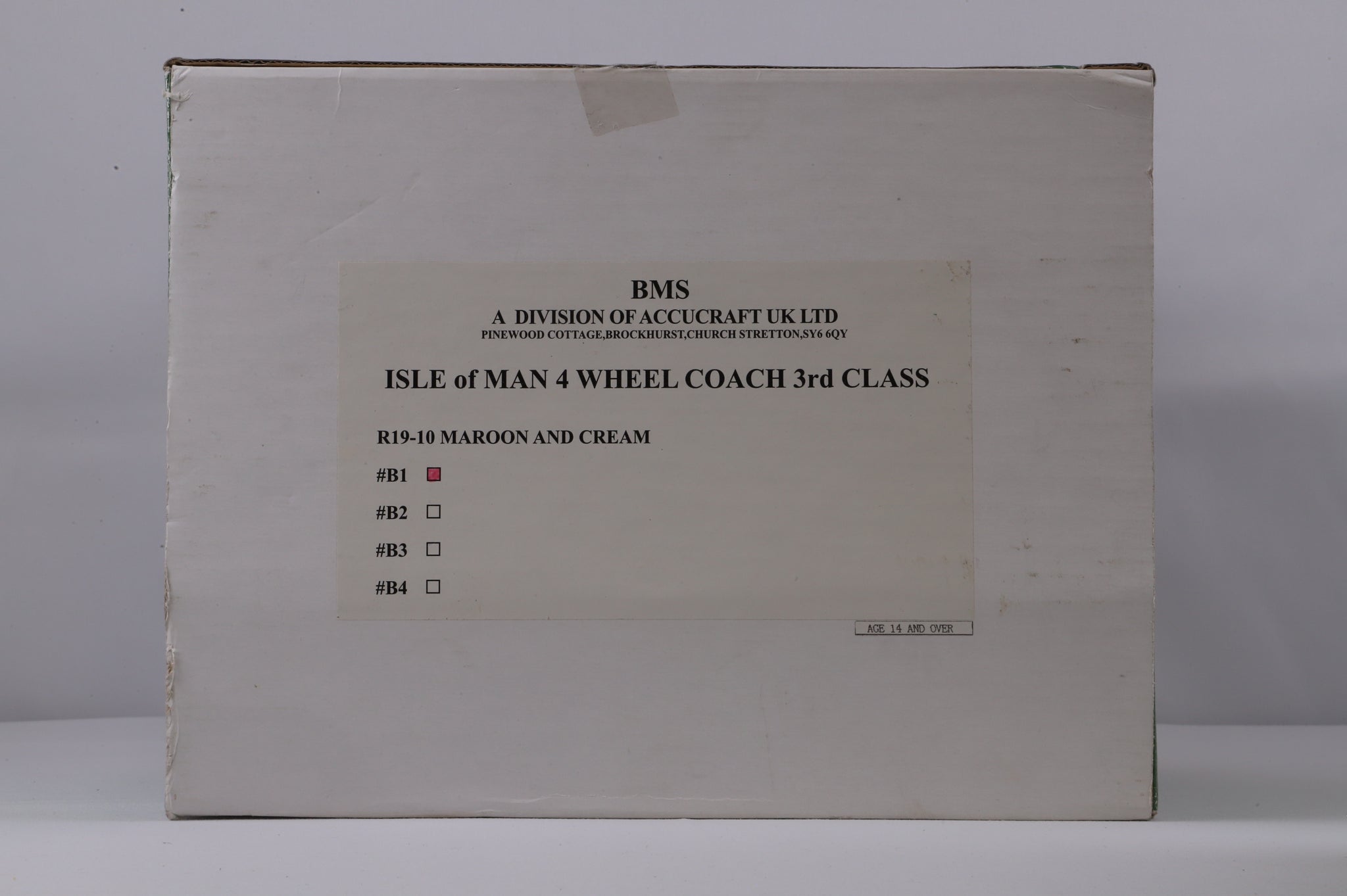 Accucraft Isle of Man Railway 4-wheel Third Class Coach. Gauged for 45mm track with 32mm wheel sets included.