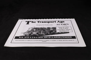 As new/unstarted Acorn Models BR Britannia 4-6-2 locomotive kit. Requires driving wheels, motor and gearbox to finish. Tender and front bogie wheels included.