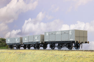 Built from unknown kits, these three LNER open wagons have been constructed to an excellent standard. One open wagon has been made from brass components, the other two from plastic (possibly Parkside or Slaters kits). Rake includes one loco coal wagon and two five plank open wagons.