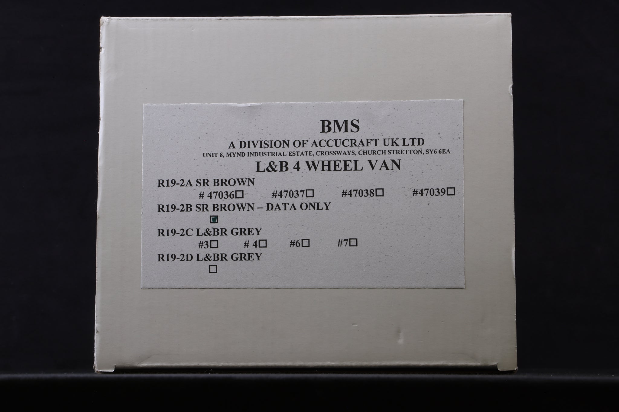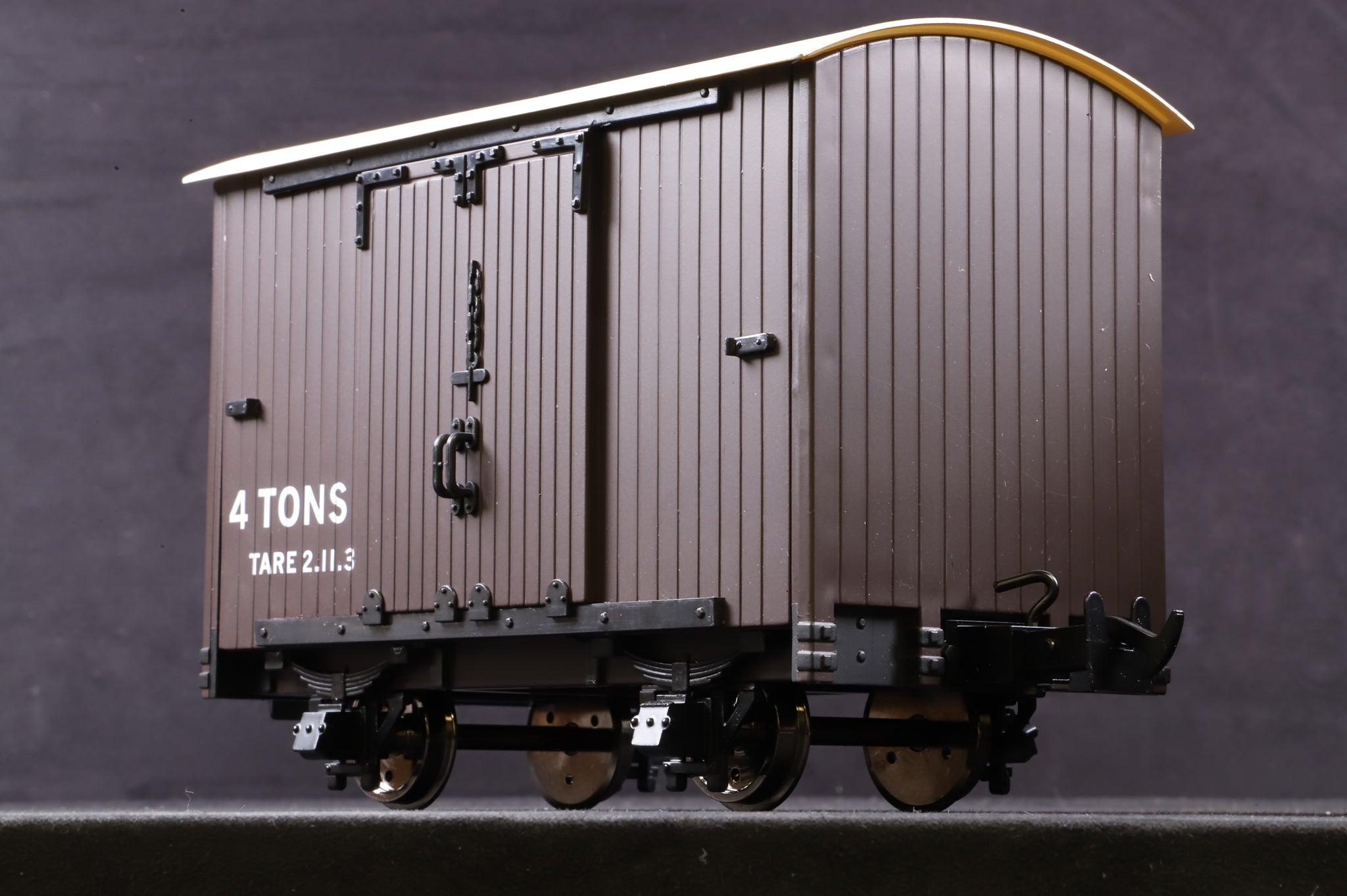As new BMS/Accucraft 16mm (32mm Gauge) L&B 4 Wheel Van R19-2B SR Brown - Data Only. Alternative 32mm gauge wheelsets are provided.