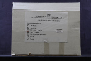 As new Accucraft L&B bogie open wagon finished in light grey, No.12. Alternative 32mm gauge wheelsets are provided.