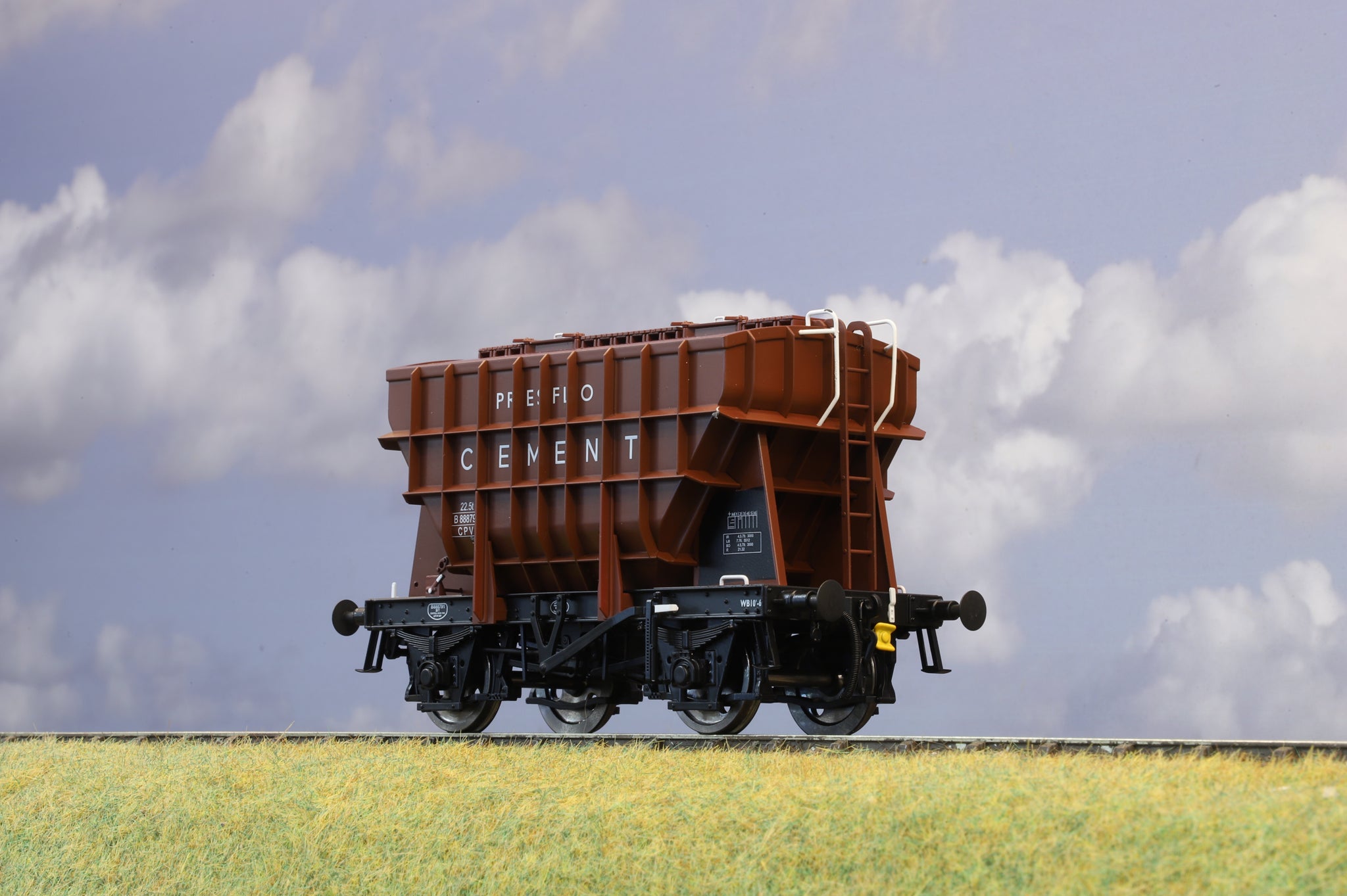 A rare opportunity to obtain a pre-owned Ellis Clark Trains Presflow wagon in 'Presflo' BR Bauxite (Product E3007A).