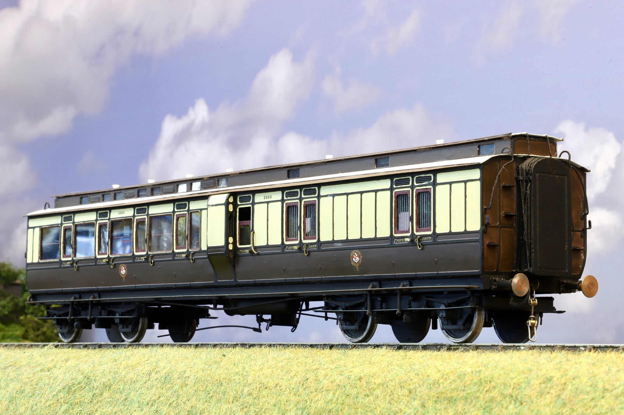 This elegant model of a GWR (pre-Grouping livery) Composite Brake Third Clerestory coach has been constructed and decorated to an excellent standard. Constructed from a brass Mallard Models Kit, the coach also features a fully fitted interior complete with scale figures.