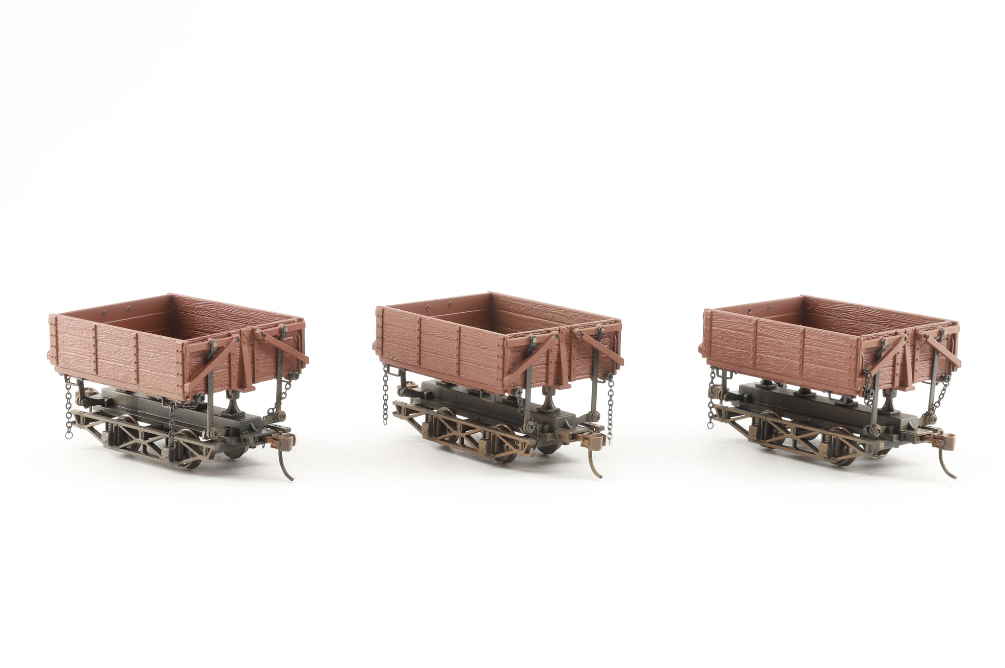 In mint condition three die-cast logging and mining cars.