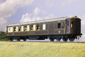 This Pullman Third Class parlour brake car ('Car No. 78') from Golden Age Models features all-brass construction, compensated axle boxes and impressive interior detailing with working lights and table lamps.
