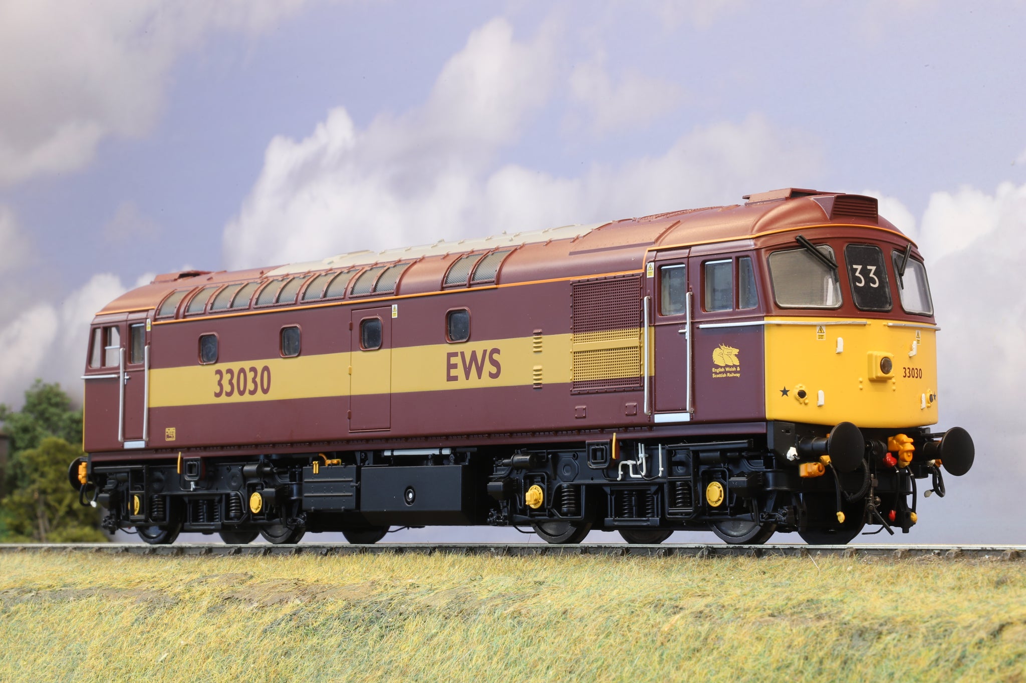 This example of Heljan's Class 33 (item no. 3402) is smartly finished in EWS red and gold. In near mint condition, the model has been fitted with DCC sound by Tower Models using a Loksound 5XL decoder.