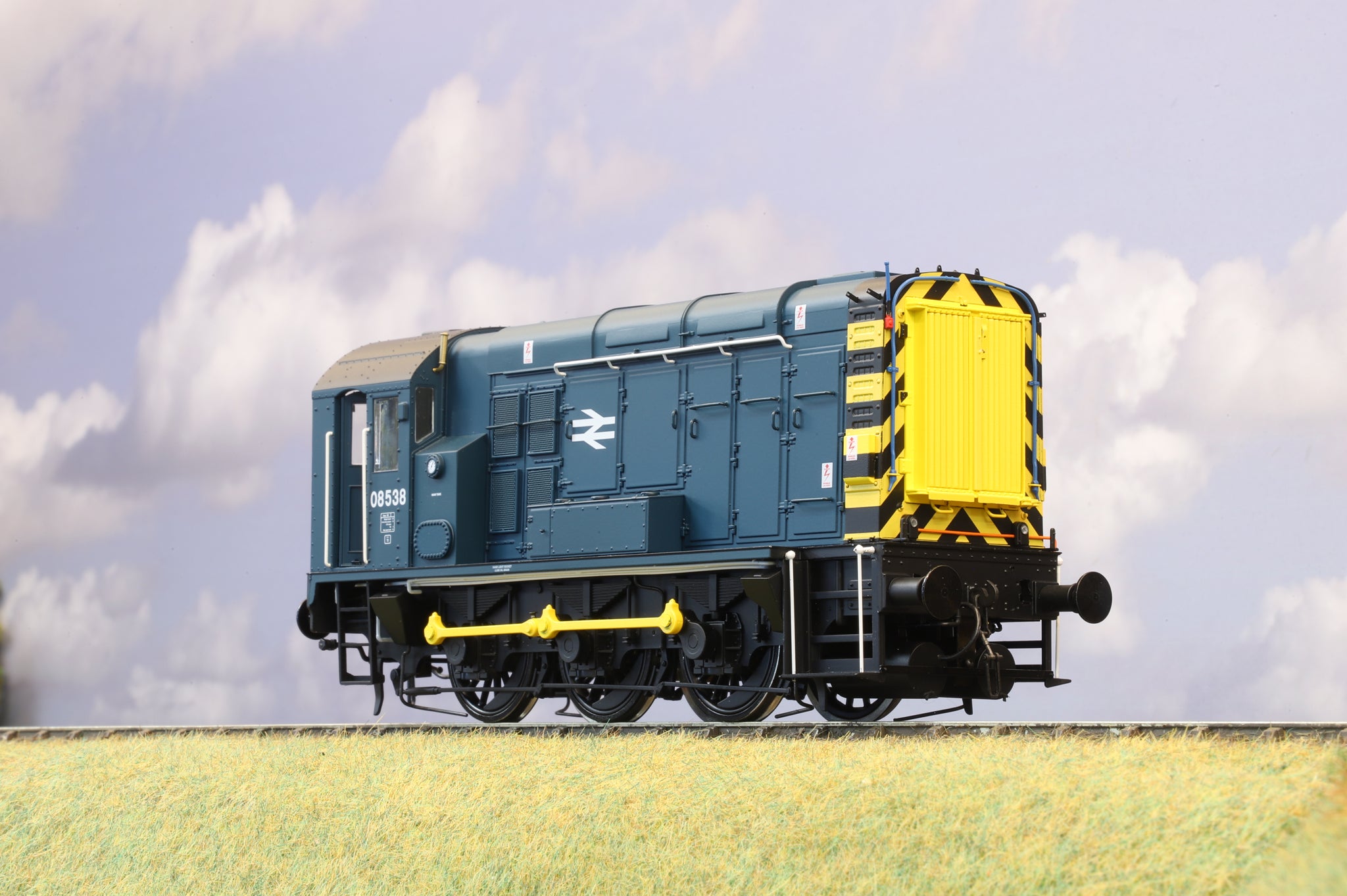 The British Railways built Class 08 shunters were arguably BR's most successful design; over 1000 were produced, and they reached all parts of the country. This BR blue example (Dapol item no. 7D-008-020S) depicts 08538, an East Midlands-based engine from its introduction in 1973. It features factory-fitted DCC sound.