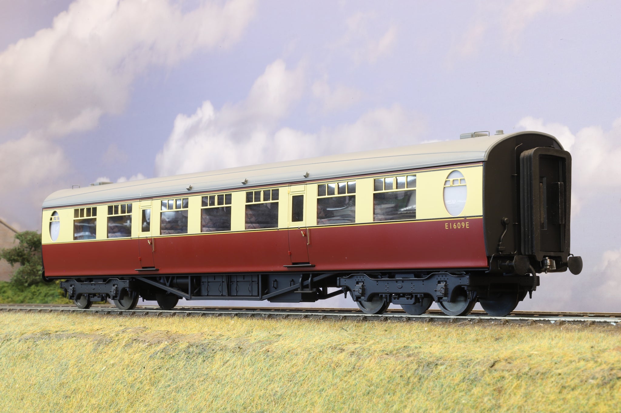 Ellis Clark Trains' Thompson coaches represent the ultimate in O Gauge passenger stock evolution, incorporating brass sides, die-cast bogies, a superbly detailed chassis and beautifully finished interiors that benefit from full lighting on both DC and DCC track power. This particular coach is an ex-display model and has seen no previous use.
