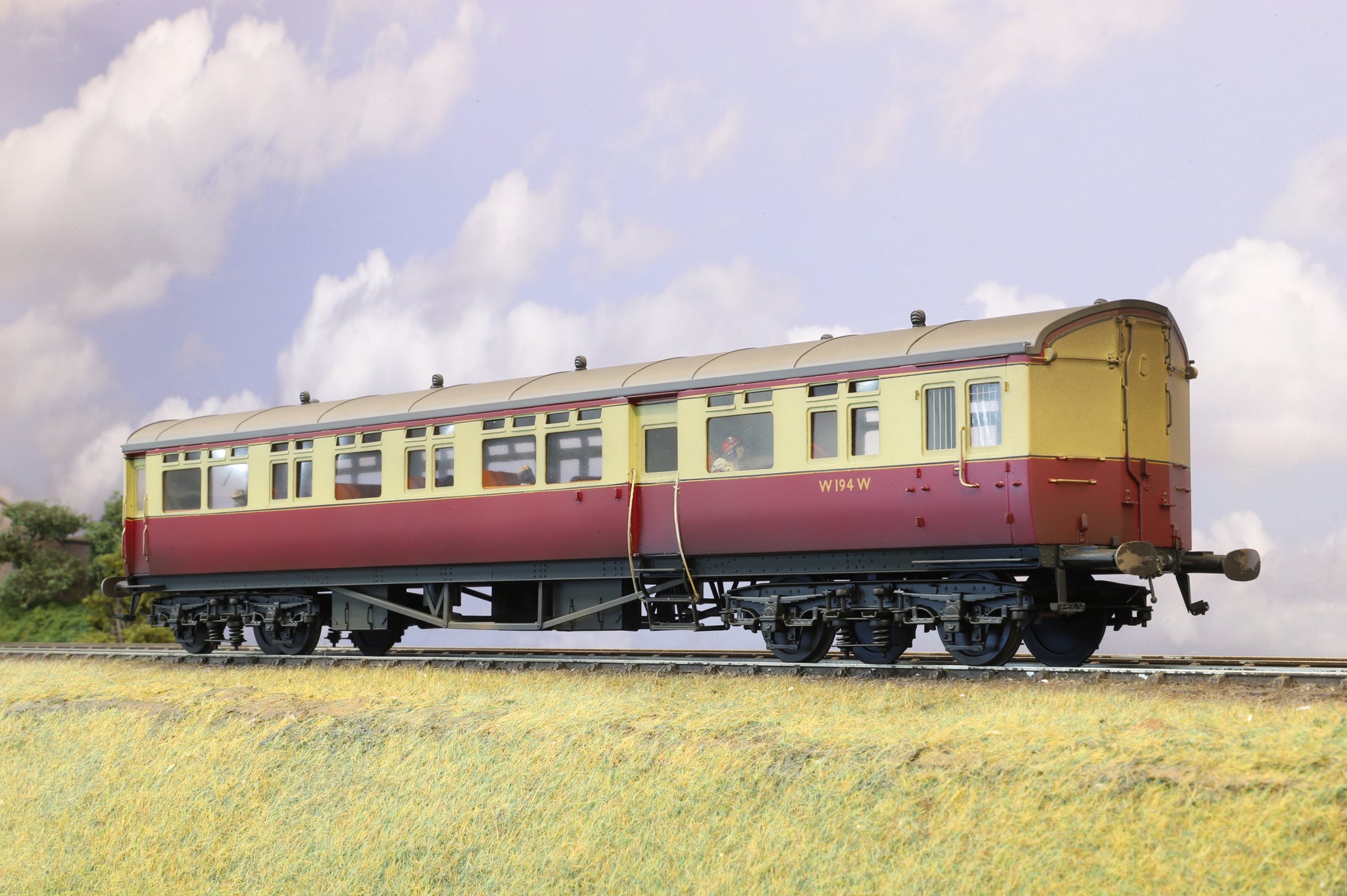 A lovely O Gauge BR Autocoach , finished in a carmine and cream livery and constructed from brass by Sancheng for Tower Models. It has been superbly finished in early 1950's Carmine & Cream livery with a light overall weathering. Further customisation has been implemented with the fitting of period passengers.