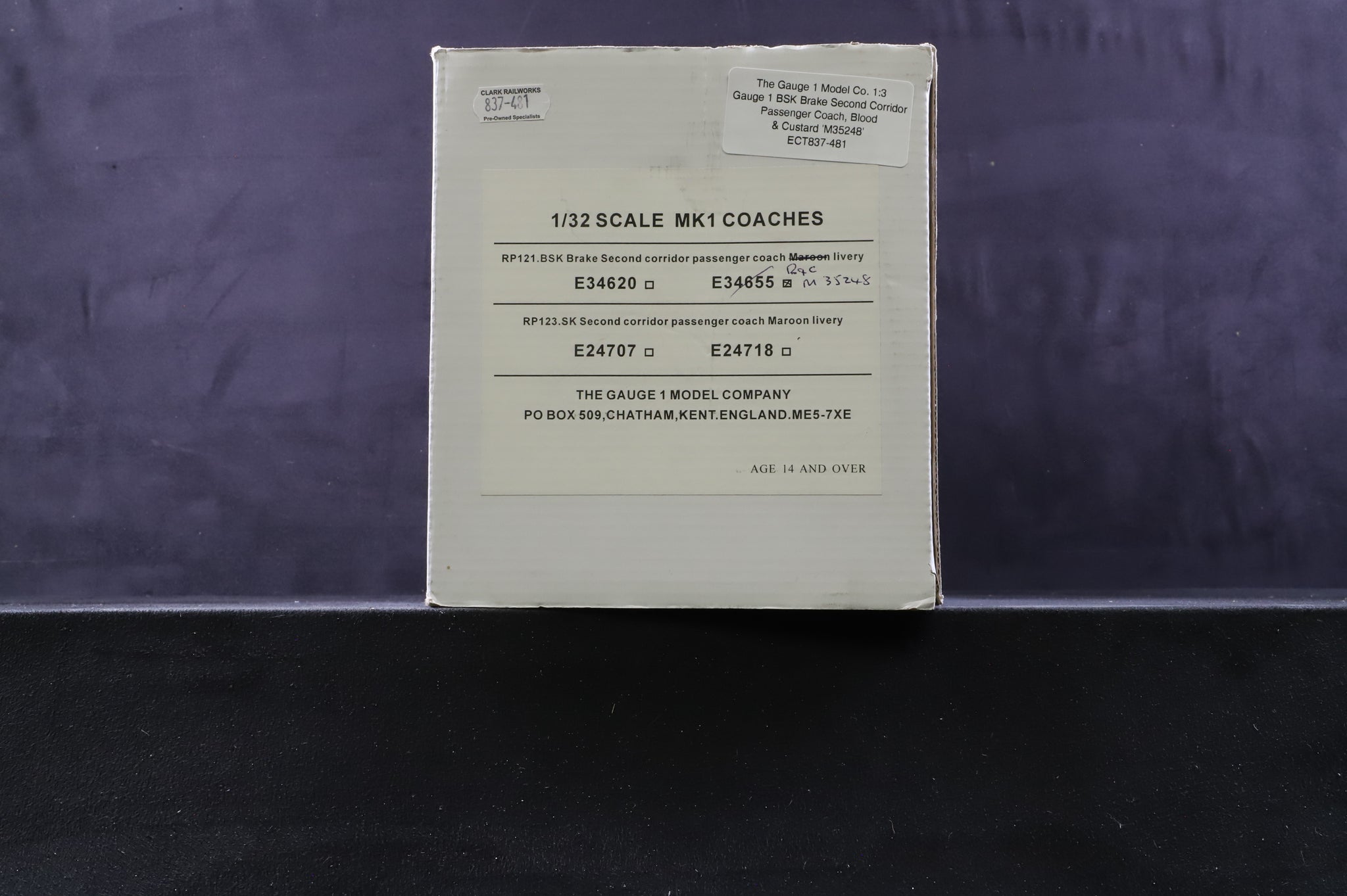 The Gauge 1 Model Co. 1:32 Gauge 1 BSK Brake Second Corridor Passenger Coach, Blood & Custard 'M35248'