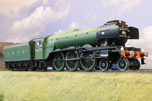 In near mint condition, with one or two minor marks to the boiler and cab roof and two adhesive marks to the tender running plate opposite the fall plate on the engine. A cab crew have been fitted. Etched 'Flying Scotsman' nameplates are included in the box.