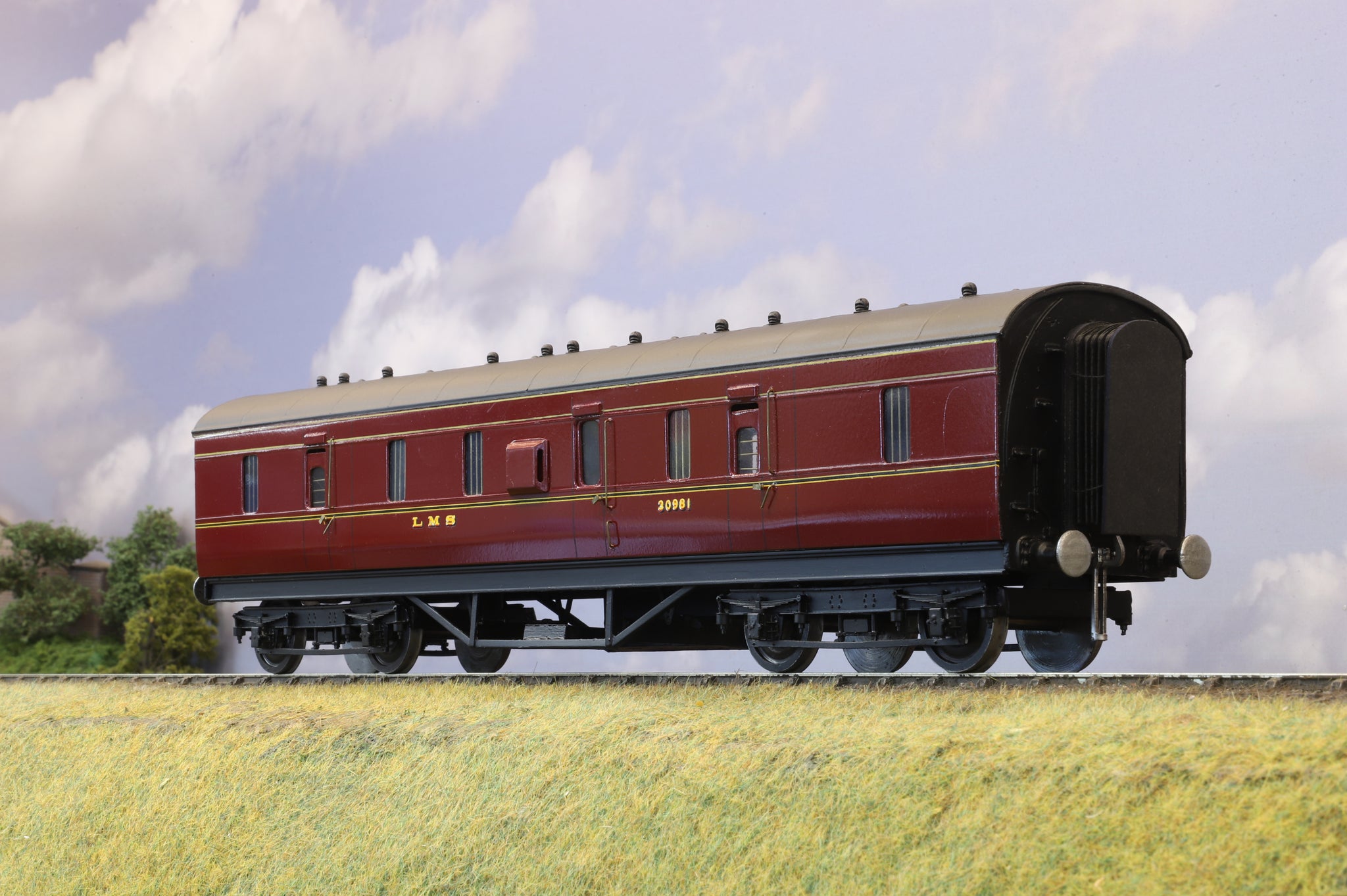 From a Westdale Kit an excellent model of Staniers 50 foot full brake in LMS lined maroon. This period 3 example was the final development in LMS coaching stock, firstly appearing in 1933. These full brakes lasted well in BR days, out lasting steam into the 1970s.
