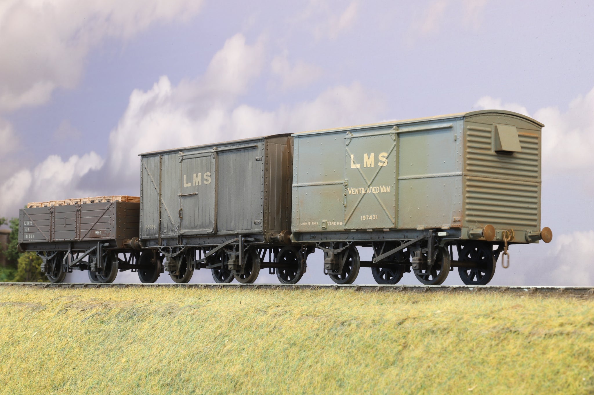 Parkside Finescale O Gauge (Kit-Built) Rake Of 3 LMS Wagons, Weathered
