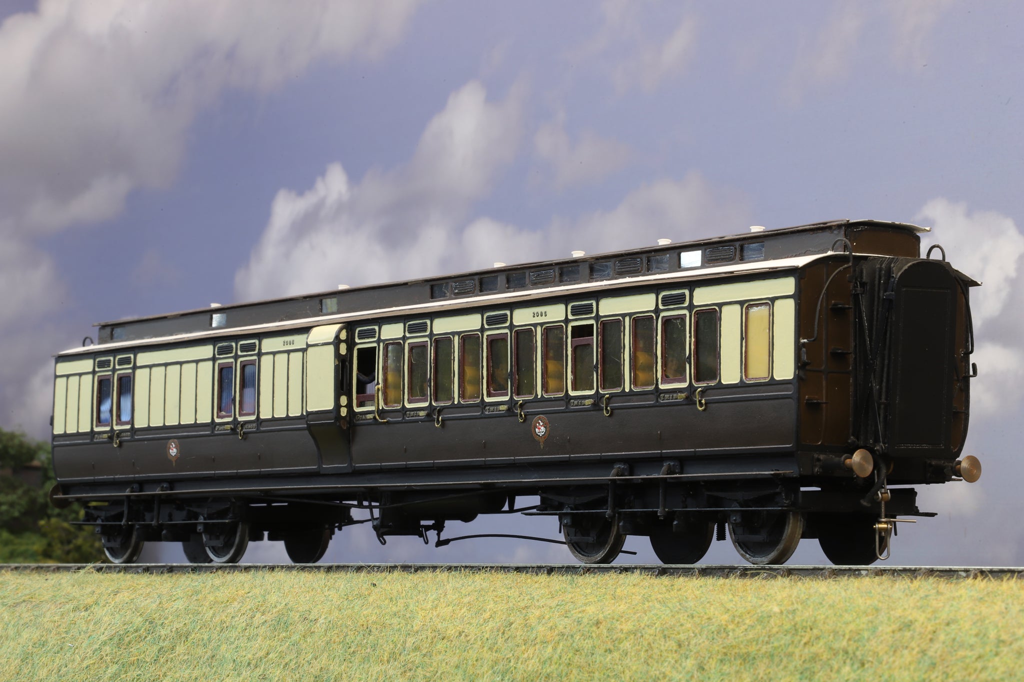 This elegant model of a GWR (pre-Grouping livery) Composite Brake Third Clerestory coach has been constructed and decorated to an excellent standard. Constructed from a brass Mallard Models Kit, the coach also features a fully fitted interior complete with scale figures.