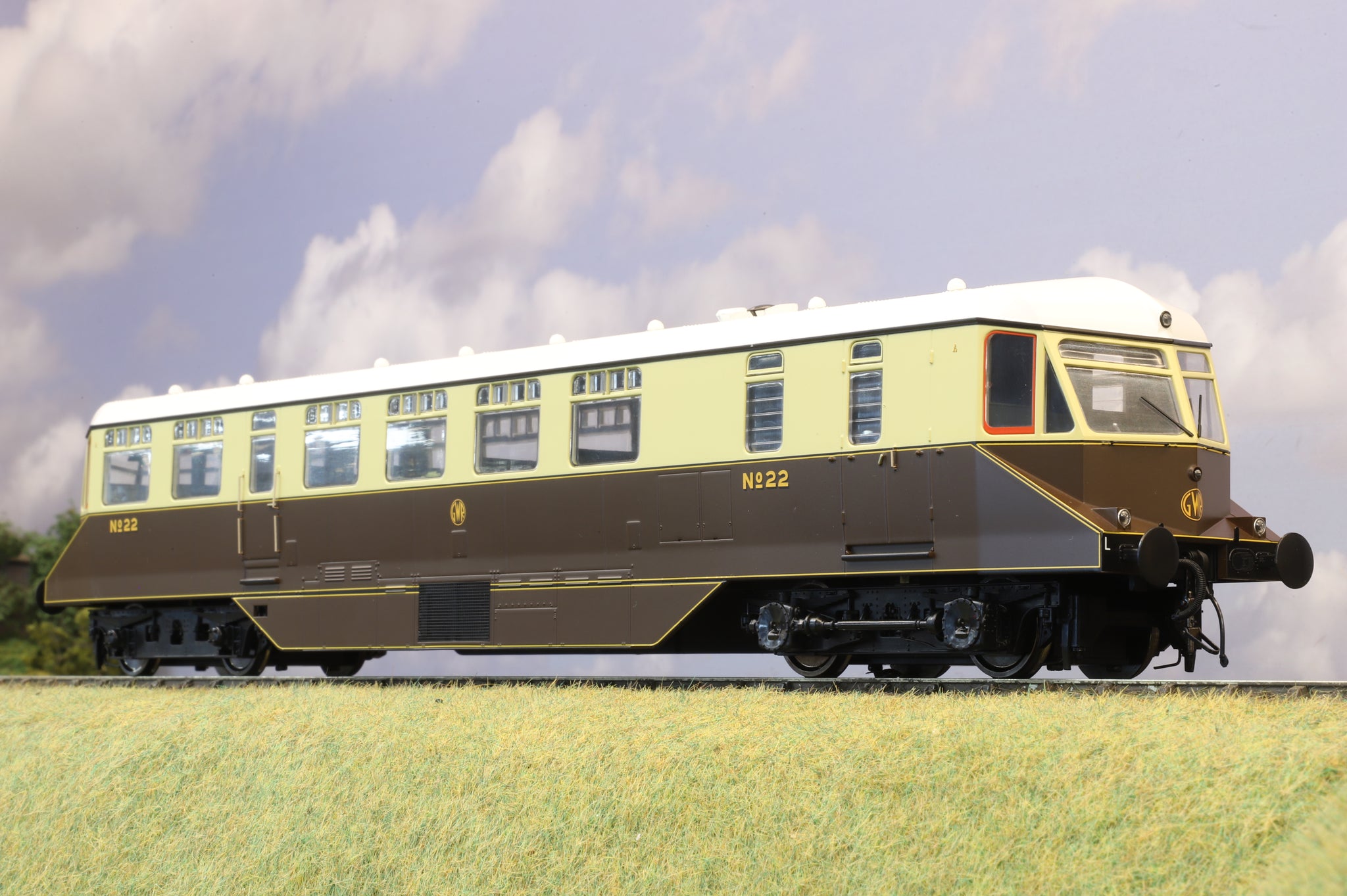The GWR introduced its stylish diesel railcars from 1933. Initial class members featured elegant streamlined bodywork, but from the nineteenth example onwards, this was abandoned in favour of a more angular design. These later railcars also featured steam heating, both for themselves and any trailing vehicles attached. Heljan's model (item no. 1900) represents no. 22, which is finished in chocolate and cream livery and features a smooth and powerful mechanism. The model appears here in mint condition, with little sign of use.