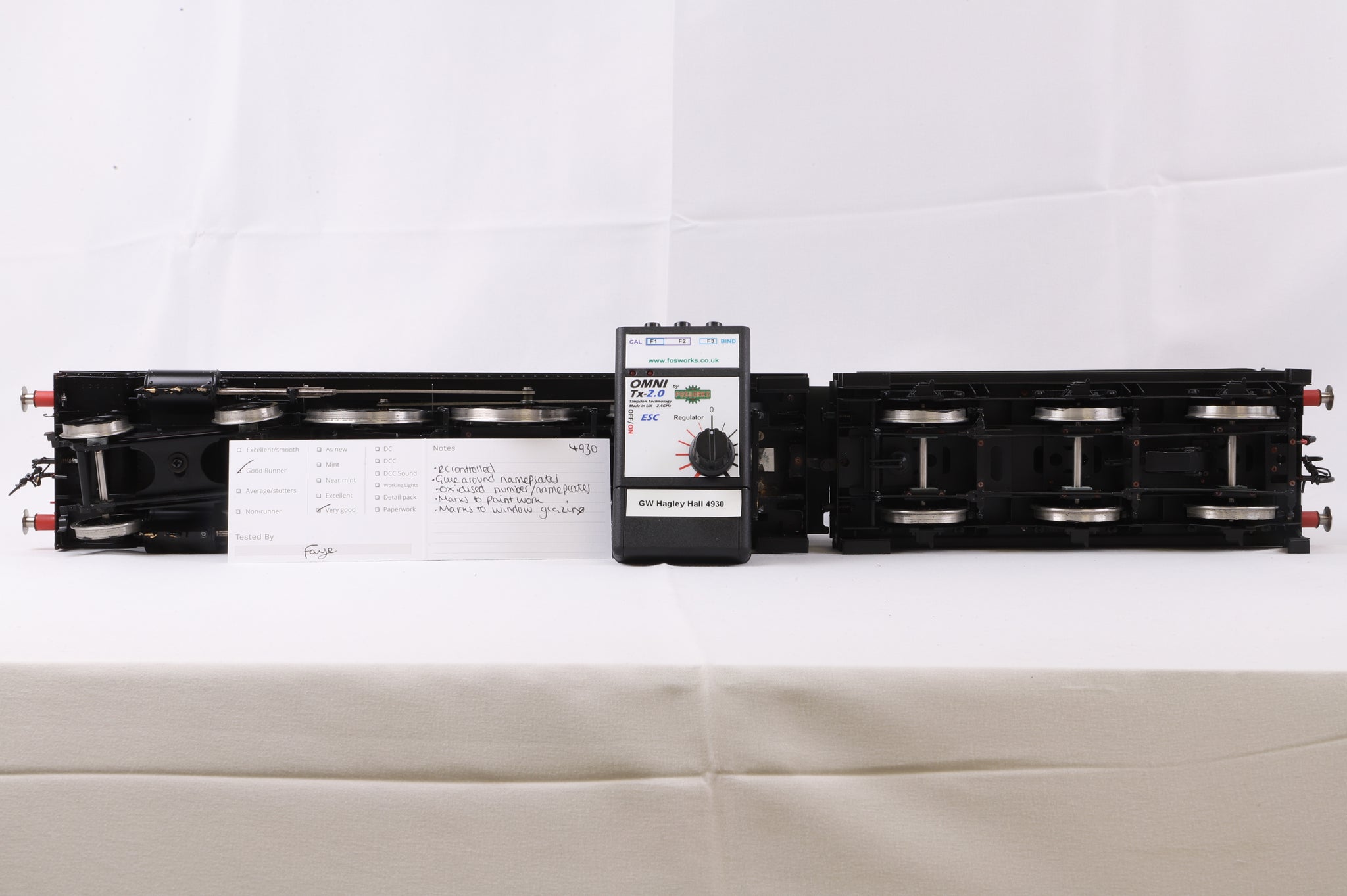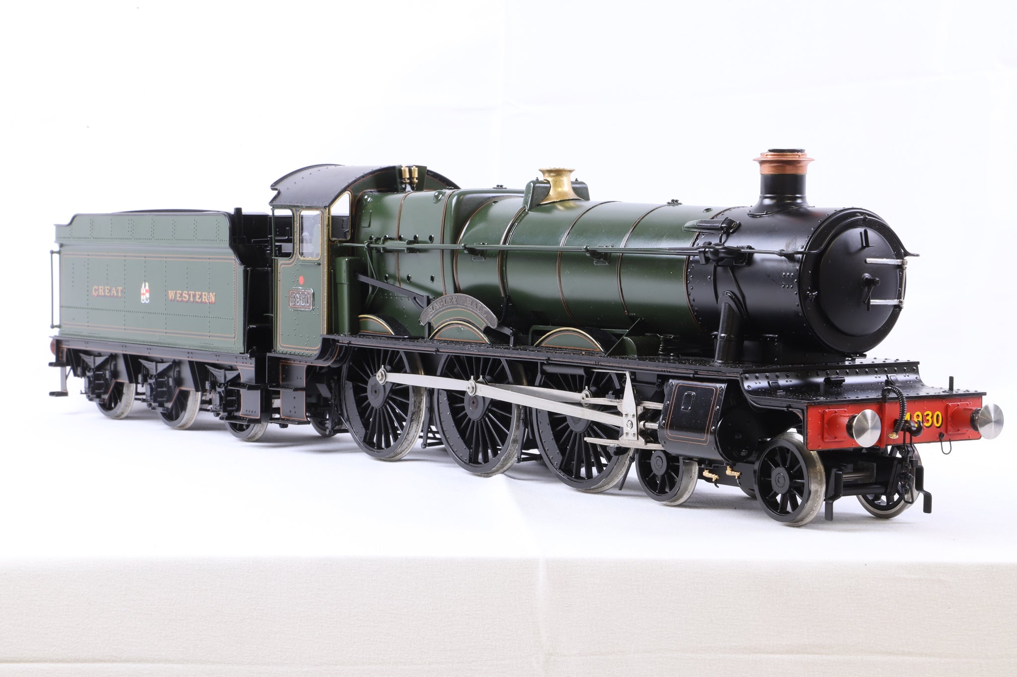 Built between 1924 and 1943, the GWR 'Halls' were essentially smaller-wheeled 'Saints' and enjoyed mainline service until 1965. No. 4930 was built in 1929 and withdrawn in 1963, after which it was preserved at the Severn Valley Railway. In very good condition, this Sancheng model is an excellent runner and benefits from Fosworks radio control.