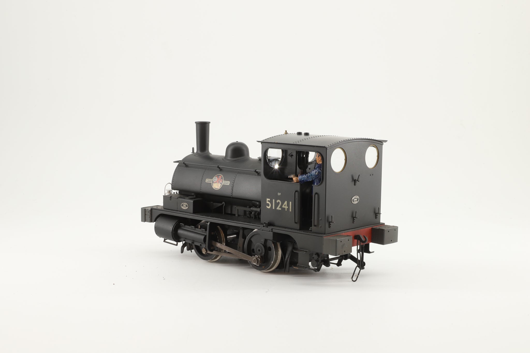 Aspinall's diminutive 'Pugs' found work largely in dockyards and areas of restricted access and were highly successful for more than 50 years. The Gauge One version of this popular engine is particularly attractive, particularly as produced in brass by Sancheng. Finished in BR Black with late crest, it is an excellent runner and fitted with Fosworks Radio Control (no sound).