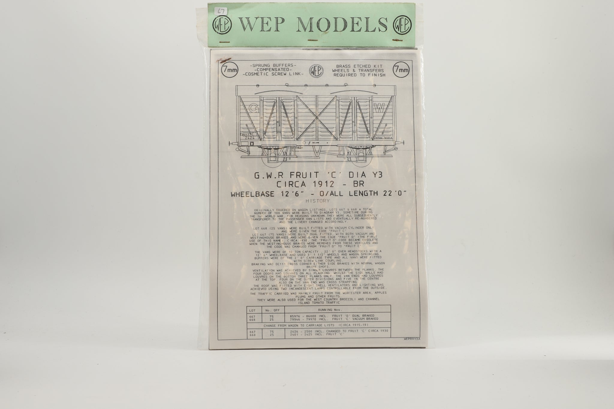 WEP Models GWR Iron Tool Van kit, as new/unstarted. Etched brass parts with whitemetal components. Requires wheels to complete.